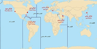 شکل (1): تشکیل هفت ناوگان دریایی توسط امریکا در سطح جهان (براساس نظریه ماهان)